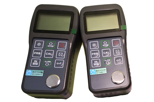 RG100B智能型超声波测厚仪,可以测量金属及其它多种材料的厚度,并可以对材料的声速进行测量。可以对生产设备中管道和压力容器进行监测,监测它们在使用过程中受腐蚀后的减薄程度,也可以对板材和加工零件作测量。